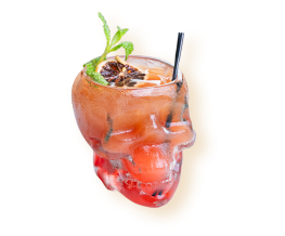 Overproof rum, orange juice, pineapple juice, grenadine, nutmeg.